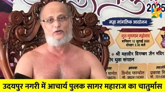 उदयपुर – जैन कनेक्ट संवाददाता | राष्ट्रसंत जैनाचार्य पुलक सागर महाराज इस वर्ष झीलों की नगरी उदयपुर में चातुर्मास करेंगे। उनके आगमन के साथ ही शहर में आध्यात्मिक ऊर्जा का संचार शुरू हो गया है। सकल जैन समाज के तत्वावधान में सर्वऋतु विलास स्थित दिगंबर जैन मंदिर में उनका चातुर्मास सम्पन्न होगा। 6 जुलाई को फतह स्कूल से विशाल शोभायात्रा निकाली जाएगी, जो नगर में धार्मिक उत्सव का स्वरूप धारण करेगी। इस चातुर्मास के दौरान गुरु गुणगान, ज्ञानगंगा और कलश स्थापना जैसे कई भव्य आयोजन भी प्रस्तावित हैं।