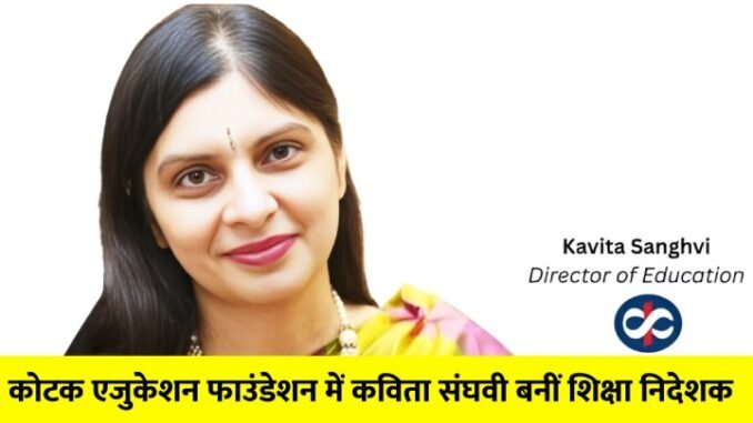 संक्षेप में, कविता संघवी की नियुक्ति से कोटक एजुकेशन फाउंडेशन को एक नया नेतृत्व मिलेगा जो समावेशी, नवोन्मेषी और उच्च गुणवत्ता वाली शिक्षा की दिशा में नए मानदंड स्थापित करेगा।