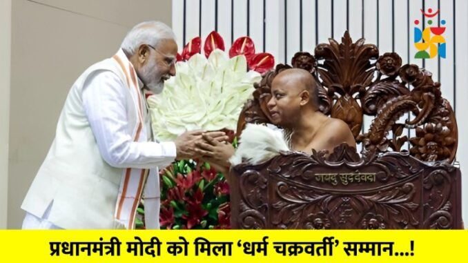 🔸 ‘धर्म चक्रवर्ती’ से अलंकृत हुए पीएम मोदी प्रधानमंत्री नरेंद्र मोदी को संत विद्यानंद की शताब्दी पर ‘धर्म चक्रवर्ती’ की उपाधि प्रदान की गई, जो एक धर्मपरायण शासक का प्रतीक है।